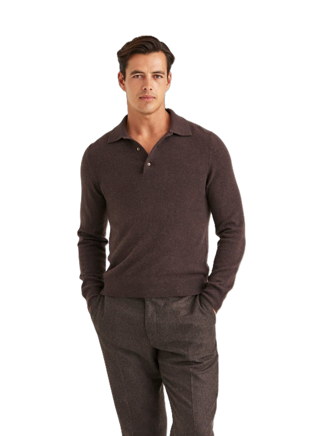 Why Choose This Brown Cashmere Collar-Neck Sweater?